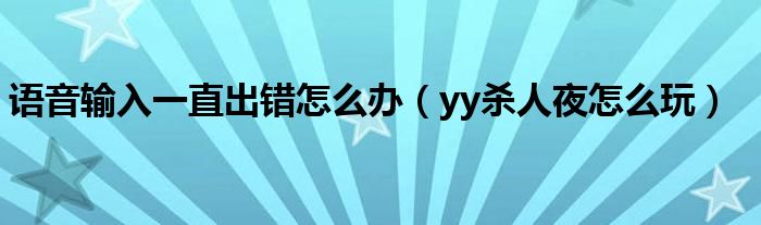 大家好,慧慧来为大家解答以上问题,语音输入一直出错怎么办,yy杀人夜怎么玩很多人还不知道,现在让我们一起来看看吧!