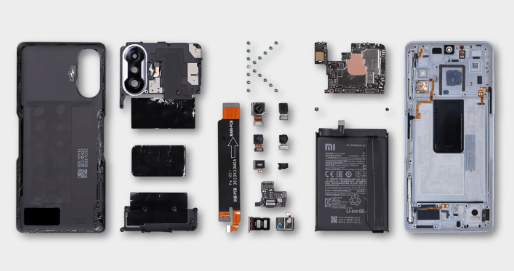 Redmi K40使用六方氮化硼航空级散热材料。它靠近主板以进行热传导。尽管这款智能手机非常轻薄,厚度仅为8.3mm,但它还装有NFC线圈组件和红外发射器。从拆卸图中我们可以看到,大多数螺丝已经粘上以进行售后识别,是否有拆卸痕迹。