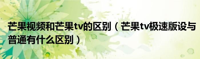 大家好,跳跳为你解答以上问题。芒果视频和芒果tv的区别,芒果tv极速版设与普通有什么区别这个问题很多人还不知道,现在让我们一起来看看吧!