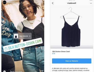 Instagram几个月前就开始在Stories中测试Shopping,现在,他们准备将其业务扩展到全球46个国家/地区的企业中,一炮而红。当您喜欢的品牌在其故事中发布幕后花絮时,如果您想了解更多信息,就可以点击产品,如果您决定购买,则最终可以在其网站上查看该产品。