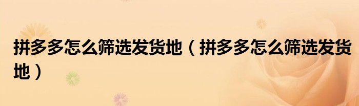 大家好,跳跳为你解答以上问题。拼多多怎么筛选发货地,拼多多怎么筛选发货地这个问题很多人还不知道,现在让我们一起来看看吧!