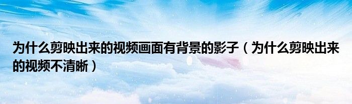 大家好,跳跳为你解答以上问题。为什么剪映出来的视频画面有背景的影子,为什么剪映出来的视频不清晰这个问题很多人还不知道,现在让我们一起来看看吧!