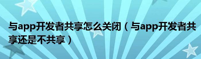 大家好,跳跳为你解答以上问题。与app开发者共享怎么关闭,与app开发者共享还是不共享这个问题很多人还不知道,现在让我们一起来看看吧!