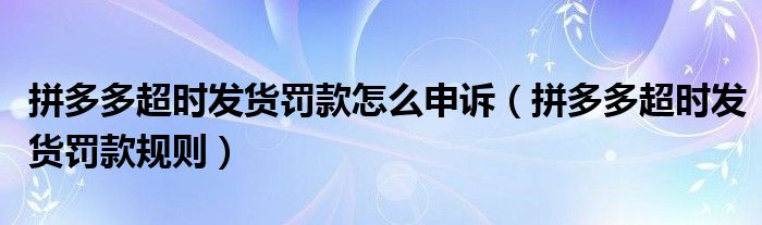 大家好,跳跳为你解答以上问题。拼多多超时发货罚款怎么申诉,拼多多超时发货罚款规则这个问题很多人还不知道,现在让我们一起来看看吧!