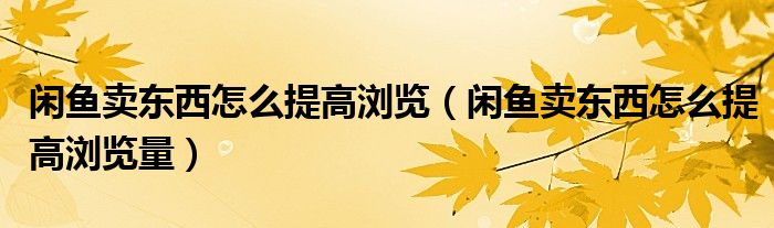 大家好,跳跳为你解答以上问题。闲鱼卖东西怎么提高浏览,闲鱼卖东西怎么提高浏览量这个问题很多人还不知道,现在让我们一起来看看吧!