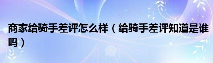 大家好,跳跳为你解答以上问题。商家给骑手差评怎么样,给骑手差评知道是谁吗这个问题很多人还不知道,现在让我们一起来看看吧!