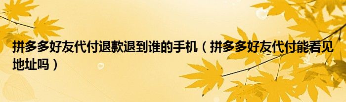 大家好,跳跳为你解答以上问题。拼多多好友代付退款退到谁的手机,拼多多好友代付能看见地址吗这个问题很多人还不知道,现在让我们一起来看看吧!