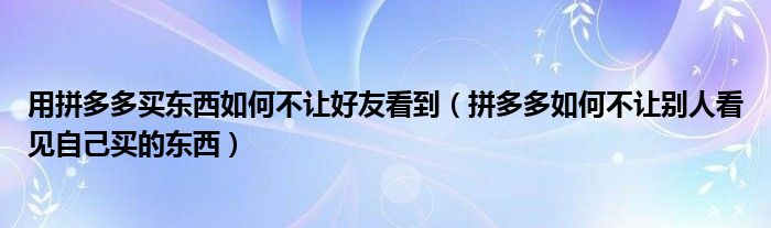 大家好,跳跳为你解答以上问题。用拼多多买东西如何不让好友看到,拼多多如何不让别人看见自己买的东西这个问题很多人还不知道,现在让我们一起来看看吧!