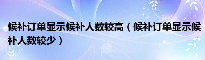 大家好,跳跳为你解答以上问题。候补订单显示候补人数较高,候补订单显示候补人数较少这个问题很多人还不知道,现在让我们一起来看看吧!