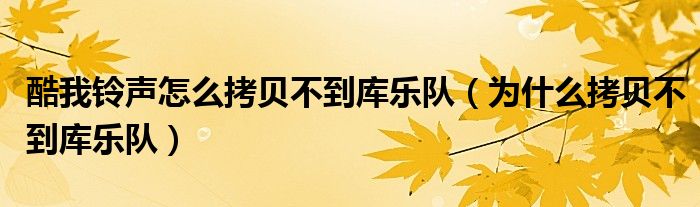 大家好,跳跳为你解答以上问题。酷我铃声怎么拷贝不到库乐队,为什么拷贝不到库乐队这个问题很多人还不知道,现在让我们一起来看看吧!