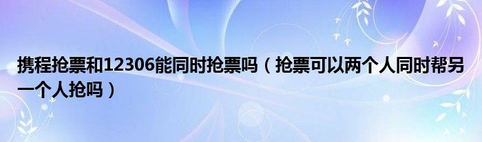 大家好,跳跳为你解答以上问题。携程抢票和12306能同时抢票吗,抢票可以两个人同时帮另一个人抢吗这个问题很多人还不知道,现在让我们一起来看看吧!