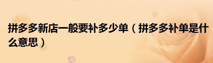 大家好,跳跳为你解答以上问题。拼多多新店一般要补多少单,拼多多补单是什么意思这个问题很多人还不知道,现在让我们一起来看看吧!