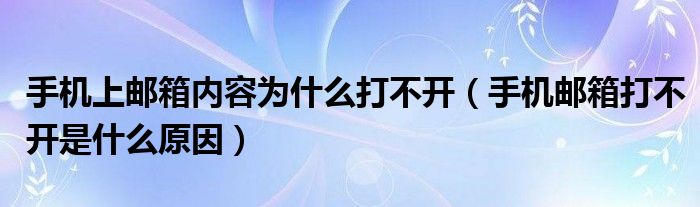 大家好,跳跳为你解答以上问题。手机上邮箱内容为什么打不开,手机邮箱打不开是什么原因这个问题很多人还不知道,现在让我们一起来看看吧!