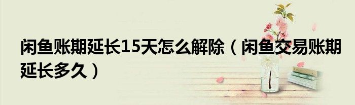 大家好,跳跳为你解答以上问题。闲鱼账期延长15天怎么解除,闲鱼交易账期延长多久这个问题很多人还不知道,现在让我们一起来看看吧!