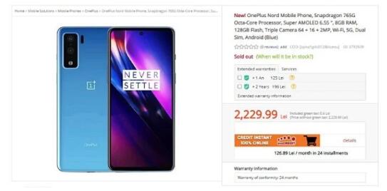 为期待OnePlus Nord智能手机的正式发布,罗马尼亚规格在线商店evoMAG.ro的网站上已经出现了带有规格和价格的预购页面。
