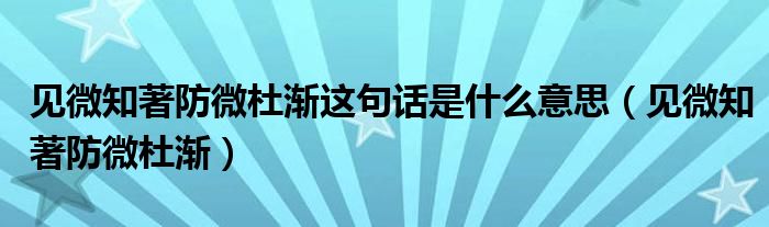 关于见微知著防微杜渐这句话是什么意思,见微知著防微杜渐这个很多人还不知道,今天菲菲来为大家解答以上的问题,现在让我们一起来看看吧!