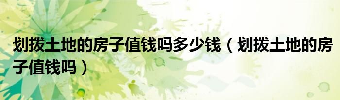 大家好,小晋来为大家解答以下问题,关于划拨土地的房子值钱吗多少钱,划拨土地的房子值钱吗很多人还不知道,今天让我们一起来看看吧!