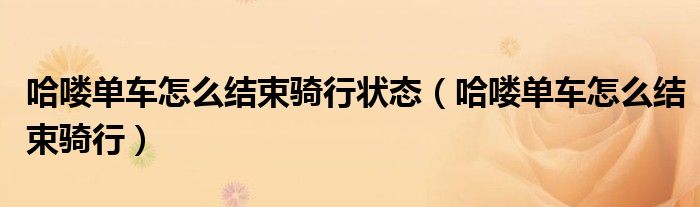 大家好,小晋来为大家解答以下问题,关于哈喽单车怎么结束骑行状态,哈喽单车怎么结束骑行很多人还不知道,今天让我们一起来看看吧!