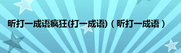 大家好,小晋来为大家解答以下问题,关于昕打一成语疯狂(打一成语),昕打一成语很多人还不知道,今天让我们一起来看看吧!
