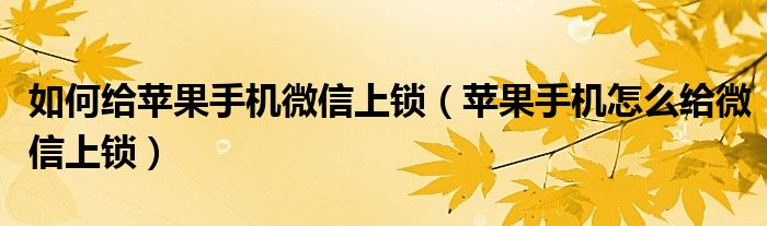 大家好,小晋来为大家解答以下问题,关于如何给苹果手机微信上锁,苹果手机怎么给微信上锁很多人还不知道,今天让我们一起来看看吧!