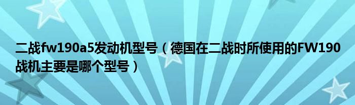 关于二战fw190a5发动机型号,德国在二战时所使用的FW190战机主要是哪个型号这个很多人还不知道,今天菲菲来为大家解答以上的问题,现在让我们一起来看看吧!