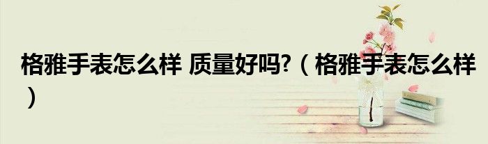 关于格雅手表怎么样 质量好吗?,格雅手表怎么样这个很多人还不知道,今天菲菲来为大家解答以上的问题,现在让我们一起来看看吧!