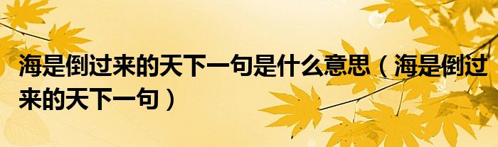 大家好,小晋来为大家解答以下问题,关于海是倒过来的天下一句是什么意思,海是倒过来的天下一句很多人还不知道,今天让我们一起来看看吧!