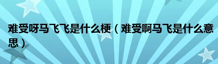 大家好,小晋来为大家解答以下问题,关于难受呀马飞飞是什么梗,难受啊马飞是什么意思很多人还不知道,今天让我们一起来看看吧!