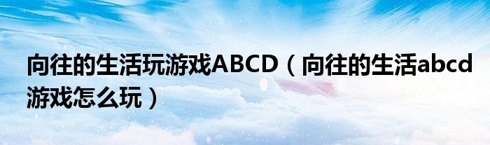 大家好,小晋来为大家解答以下问题,关于向往的生活玩游戏ABCD,向往的生活abcd游戏怎么玩很多人还不知道,今天让我们一起来看看吧!