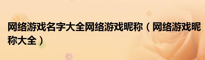 大家好,来宝来为大家解答以下问题,网络游戏名字大全网络游戏昵称,网络游戏昵称大全很多人还不知道,今天让我们一起来看看吧!