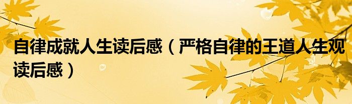 关于自律成就人生读后感,严格自律的王道人生观读后感这个很多人还不知道,今天菲菲来为大家解答以上的问题,现在让我们一起来看看吧!