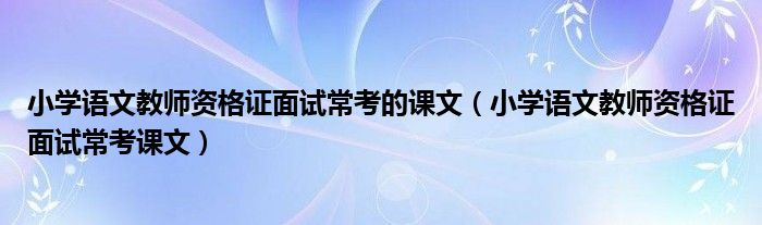 关于小学语文教师资格证面试常考的课文,小学语文教师资格证面试常考课文这个很多人还不知道,今天菲菲来为大家解答以上的问题,现在让我们一起来看看吧!