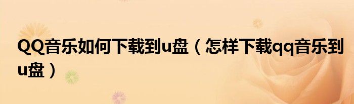 关于QQ音乐如何下载到u盘,怎样下载qq音乐到u盘这个很多人还不知道,今天菲菲来为大家解答以上的问题,现在让我们一起来看看吧!