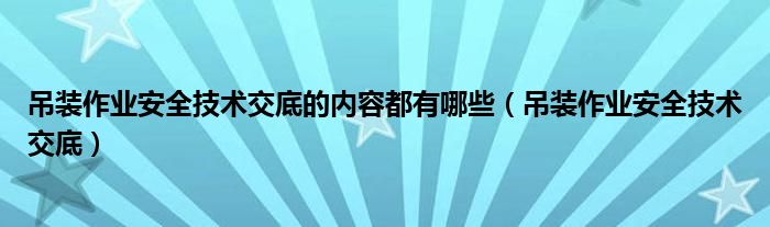 关于吊装作业安全技术交底的内容都有哪些,吊装作业安全技术交底这个很多人还不知道,今天菲菲来为大家解答以上的问题,现在让我们一起来看看吧!