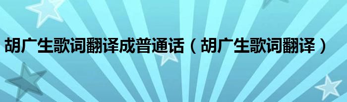 大家好,小晋来为大家解答以下问题,关于胡广生歌词翻译成普通话,胡广生歌词翻译很多人还不知道,今天让我们一起来看看吧!