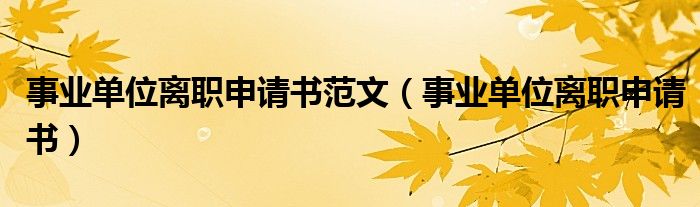 关于事业单位离职申请书范文,事业单位离职申请书这个很多人还不知道,今天菲菲来为大家解答以上的问题,现在让我们一起来看看吧!