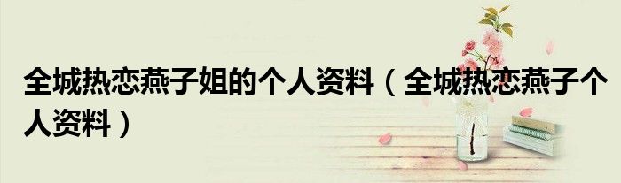 大家好,小晋来为大家解答以下问题,关于全城热恋燕子姐的个人资料,全城热恋燕子个人资料很多人还不知道,今天让我们一起来看看吧!
