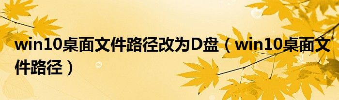 关于win10桌面文件路径改为D盘,win10桌面文件路径这个很多人还不知道,今天菲菲来为大家解答以上的问题,现在让我们一起来看看吧!
