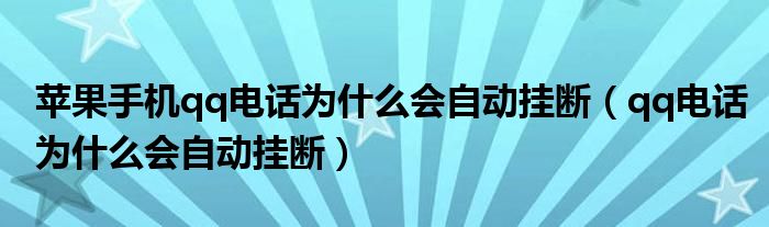 大家好,小晋来为大家解答以下问题,关于苹果手机qq电话为什么会自动挂断,qq电话为什么会自动挂断很多人还不知道,今天让我们一起来看看吧!