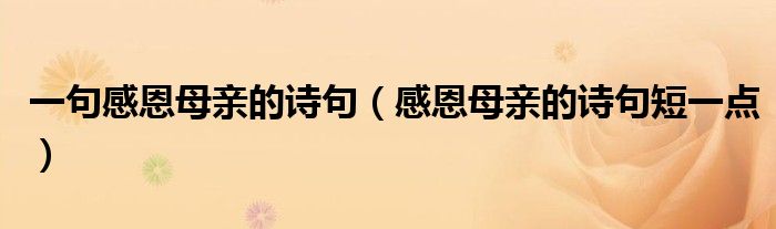 大家好,小晋来为大家解答以下问题,关于一句感恩母亲的诗句,感恩母亲的诗句短一点很多人还不知道,今天让我们一起来看看吧!