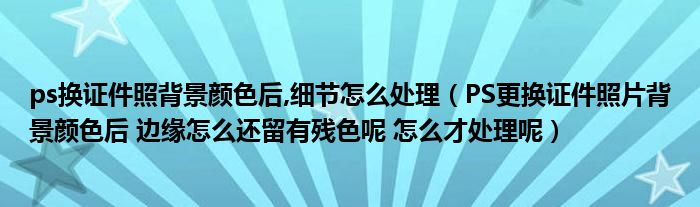 关于ps换证件照背景颜色后,细节怎么处理,PS更换证件照片背景颜色后 边缘怎么还留有残色呢 怎么才处理呢这个很多人还不知道,今天菲菲来为大家解答以上的问题,现在让我们一起来看看吧!