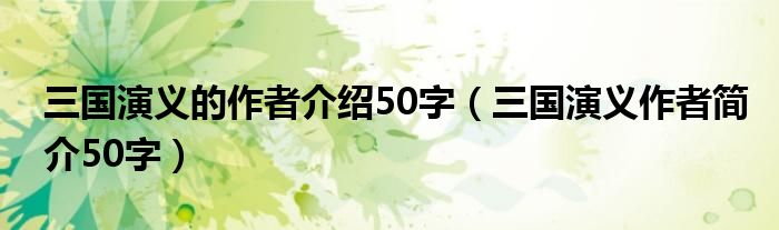 关于三国演义的作者介绍50字,三国演义作者简介50字这个很多人还不知道,今天菲菲来为大家解答以上的问题,现在让我们一起来看看吧!