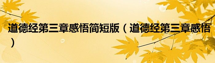 关于道德经第三章感悟简短版,道德经第三章感悟这个很多人还不知道,今天菲菲来为大家解答以上的问题,现在让我们一起来看看吧!