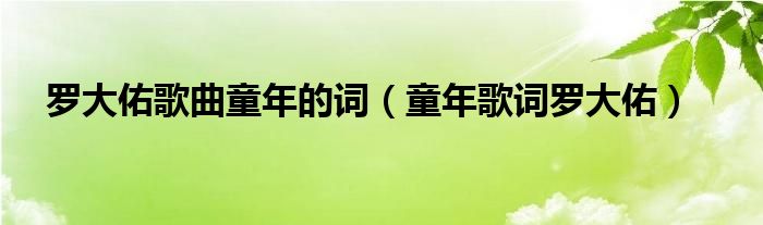 关于罗大佑歌曲童年的词,童年歌词罗大佑这个很多人还不知道,今天菲菲来为大家解答以上的问题,现在让我们一起来看看吧!