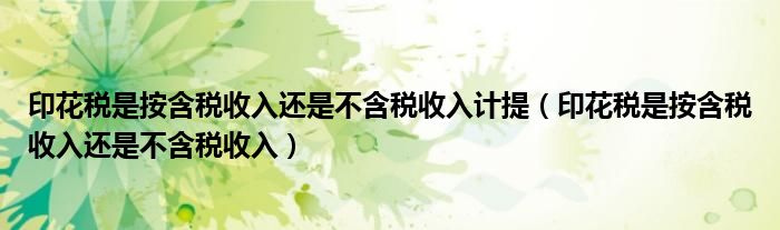 关于印花税是按含税收入还是不含税收入计提,印花税是按含税收入还是不含税收入这个很多人还不知道,今天菲菲来为大家解答以上的问题,现在让我们一起来看看吧!