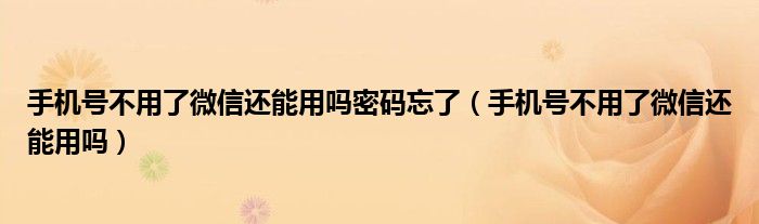 大家好,小晋来为大家解答以下问题,关于手机号不用了微信还能用吗密码忘了,手机号不用了微信还能用吗很多人还不知道,今天让我们一起来看看吧!