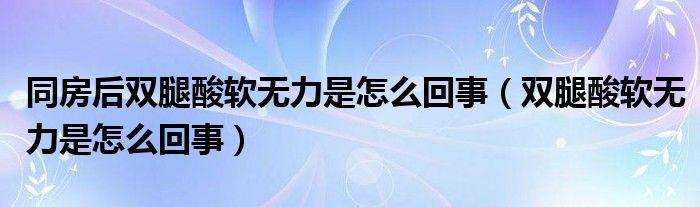 关于同房后双腿酸软无力是怎么回事,双腿酸软无力是怎么回事这个很多人还不知道,今天菲菲来为大家解答以上的问题,现在让我们一起来看看吧!