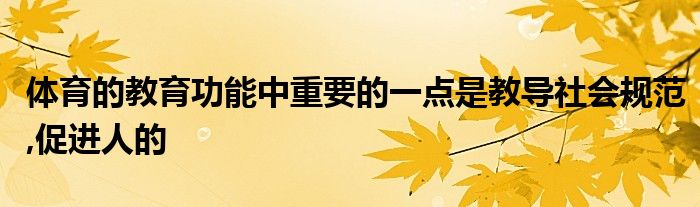 关于体育的教育功能中重要的一点是教导社会规范,促进人的这个很多人还不知道,今天菲菲来为大家解答以上的问题,现在让我们一起来看看吧!