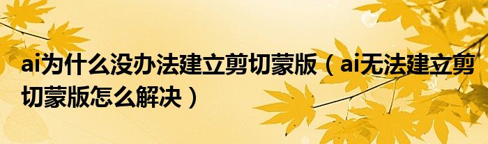 关于ai为什么没办法建立剪切蒙版,ai无法建立剪切蒙版怎么解决这个很多人还不知道,今天菲菲来为大家解答以上的问题,现在让我们一起来看看吧!