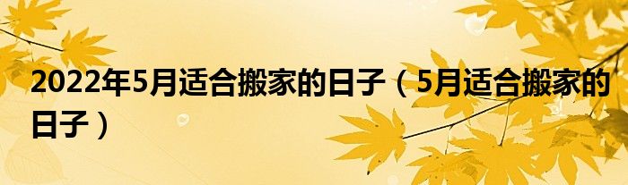 关于2022年5月适合搬家的日子,5月适合搬家的日子这个很多人还不知道,今天菲菲来为大家解答以上的问题,现在让我们一起来看看吧!